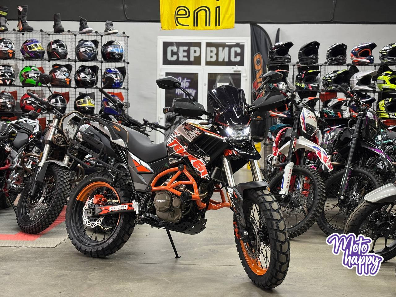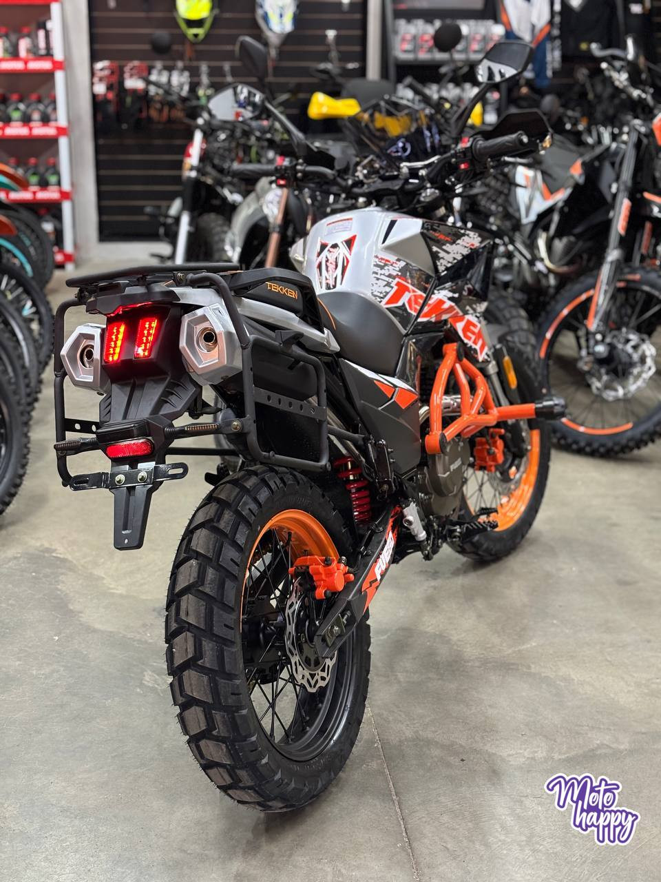 Концепция проверенного универсала сохранена: прямая комфортная посадка, прочная рама, массивные колёса R17 с универсальным протектором и эффективные тормоза. Улучшенная подвеска справляется и с гладким асфальтом, и с неровностями загородных дорог. А наличие крепкого багажника делает TEKKEN EFI готовым к путешествиям прямо из салона.