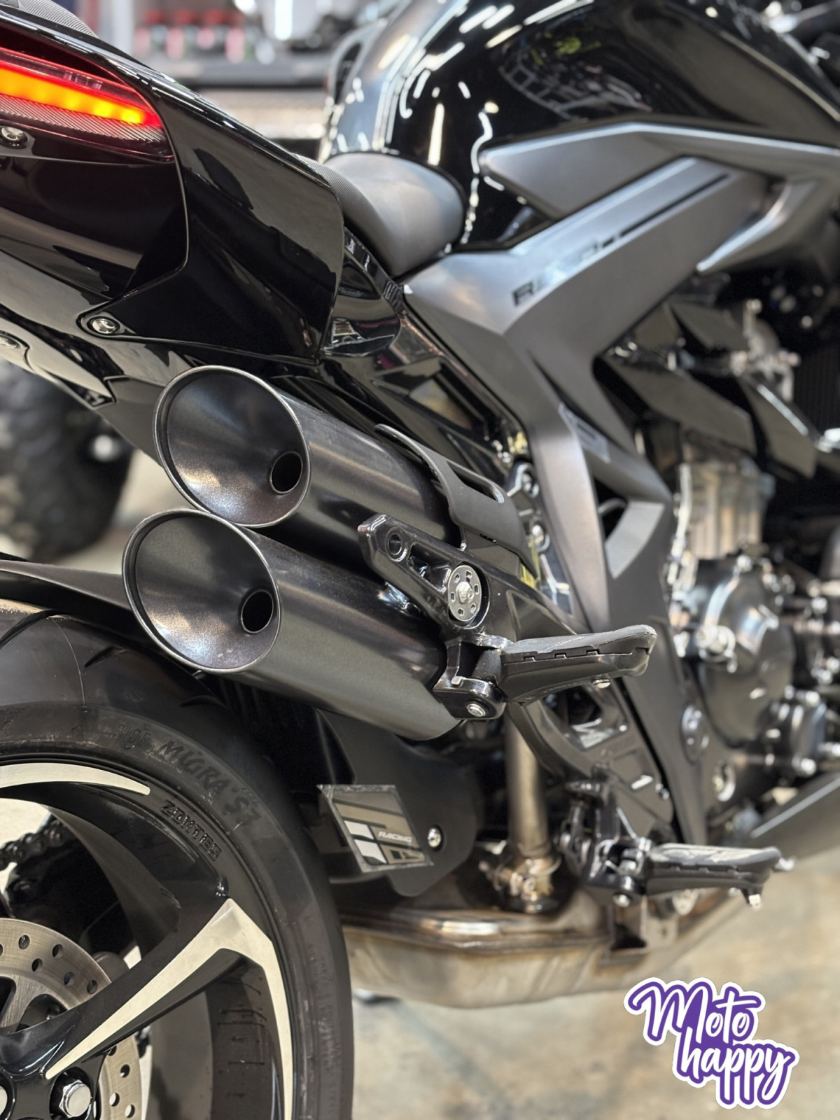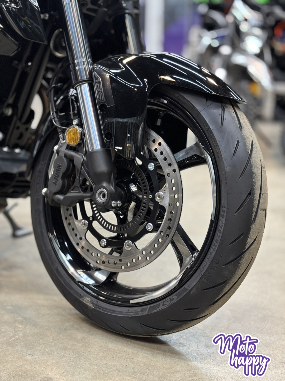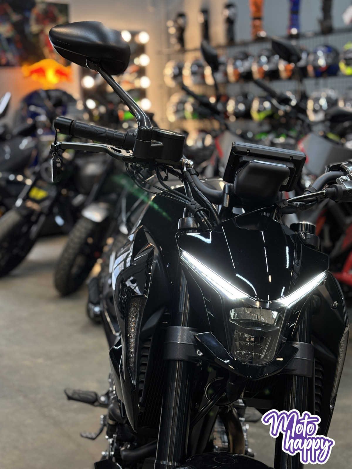 Комплектация. Для фар используется яркая LED-оптика, а приборная панель оснащена цифровым дисплеем. Рычаги тормоза, сцепления и лапки КПП можно отрегулировать. Мотоцикл оснащён датчиками давления в шинах. Имеется 2 USB-порта.