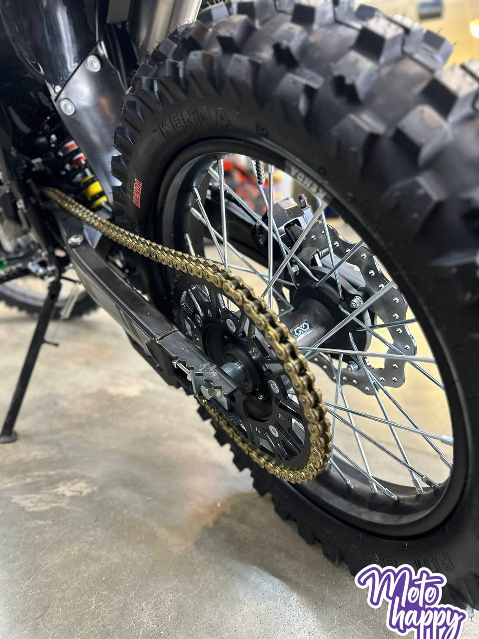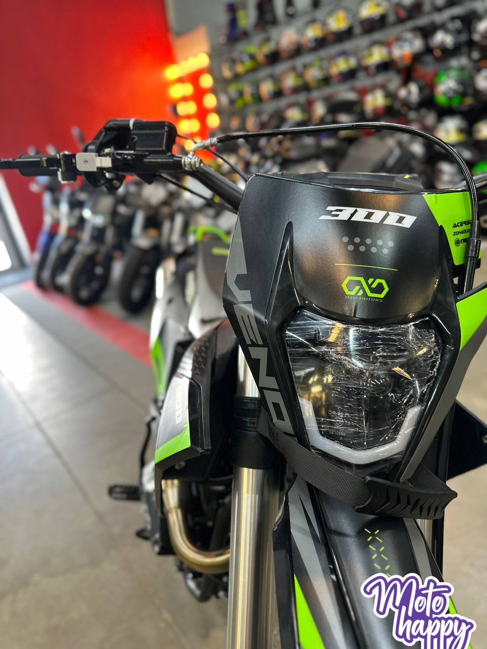 В основе — легкая и прочная хром-молибденовая рама и прогрессивная подвеска с перевернутой вилкой. Мотоцикл обут в "жирную" резину KENDA (80/100-21 и 120/100-18), которая отлично держит песок и грязь. Сухой вес 118 кг делает его маневренным и послушным. VENOM 300 — это мощный рабочий инструмент без лишних компромиссов.