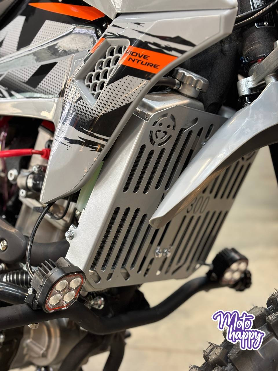TE 300 PRO - это не просто обновлённый мотор, а полностью продуманный туристический комплект. В стандартной поставке вы получаете новое лобовое стекло для защиты от ветра, дополнительный свет для лучшей видимости в тёмное время суток, алюминиевую защиту радиатора и свежий, дерзкий дизайн. Все эти элементы превращают поездку в настоящее удовольствие.