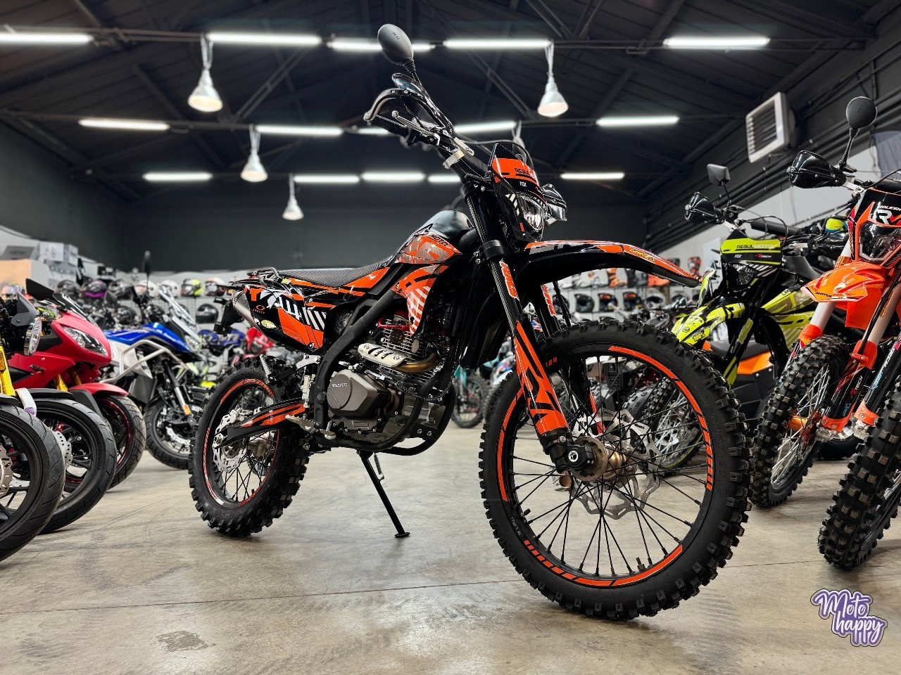 ZR PR создан для активного фрирайда и повседневной эксплуатации. Его прочная стальная рама, длинноходная перевёрнутая вилка и регулируемая задняя подвеска готовы к любым неровностям. Ключевое преимущество - наличие ПТС, что позволяет легально использовать мотоцикл на дорогах общего пользования. Полная светотехника, зеркала, электростартер, удобный руль Fatbar и багажник делают его практичным спутником на каждый день.