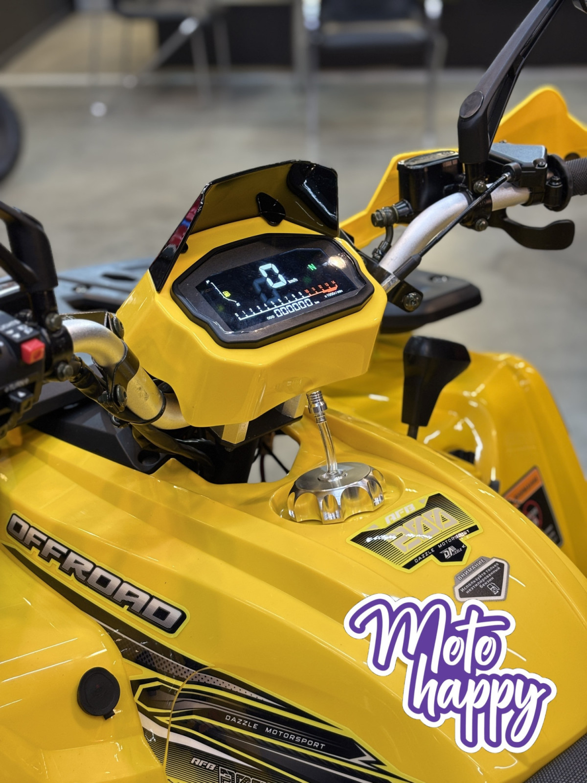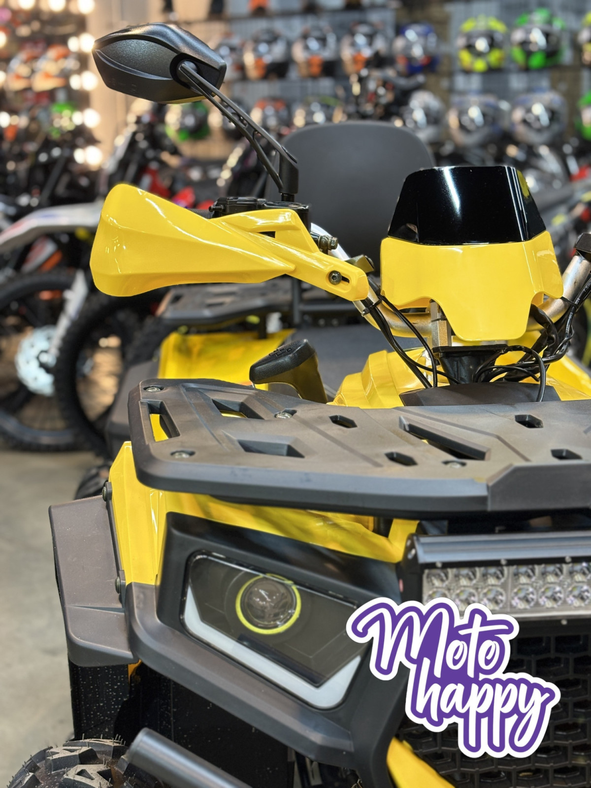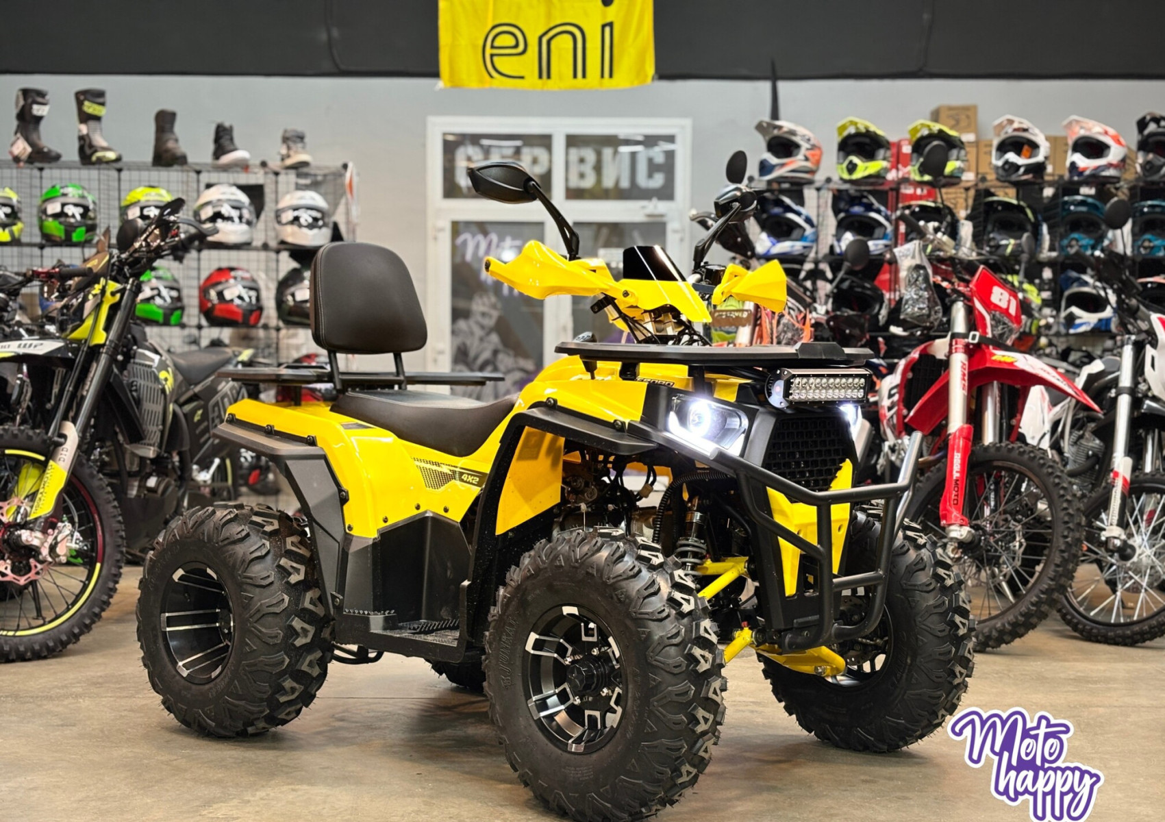 Отличительной особенностью данного квадроцикла является не только хорошее качество комплектующих, но и современный дизайн, основанный на новых тенденциях современной квадротехники. За вполне приемлемые деньги вы получаете яркую оптику на Led огнях, информативную ж/к панель приборов, двухместное седло и два багажника.