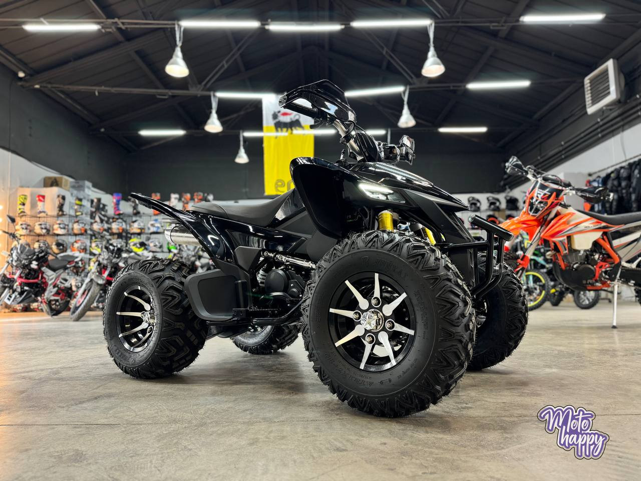 Квадроцикл SPORTY 250 — это спортивный квадроцикл с двигателем SHINERAY 250 и балансирным валом. Он оснащён большими колёсами размером 10 дюймов спереди и 10 дюймов сзади. Трансмиссия квадроцикла — 4-ступенчатая механическая коробка передач с реверсом. На приборной панели есть ЖК-дисплей с тахометром, включенной передачей и скоростью. Клиренс квадроцикла составляет 150 мм, а высота по седлу — 815 мм.