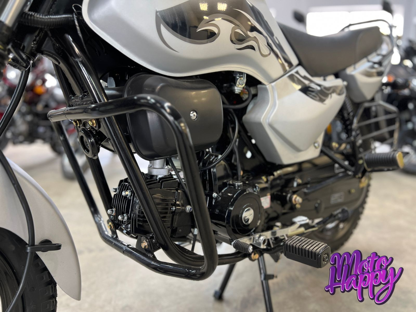 В стоковой комплектации идут дуги безопасности, жестко закрепленные на раме. Это выгодно отличает аппарат от ряда мопедов, у которых крепление дуг безопасности находится на ДВС.