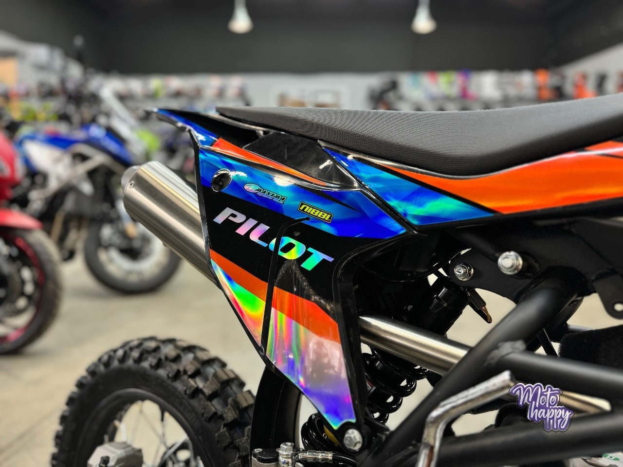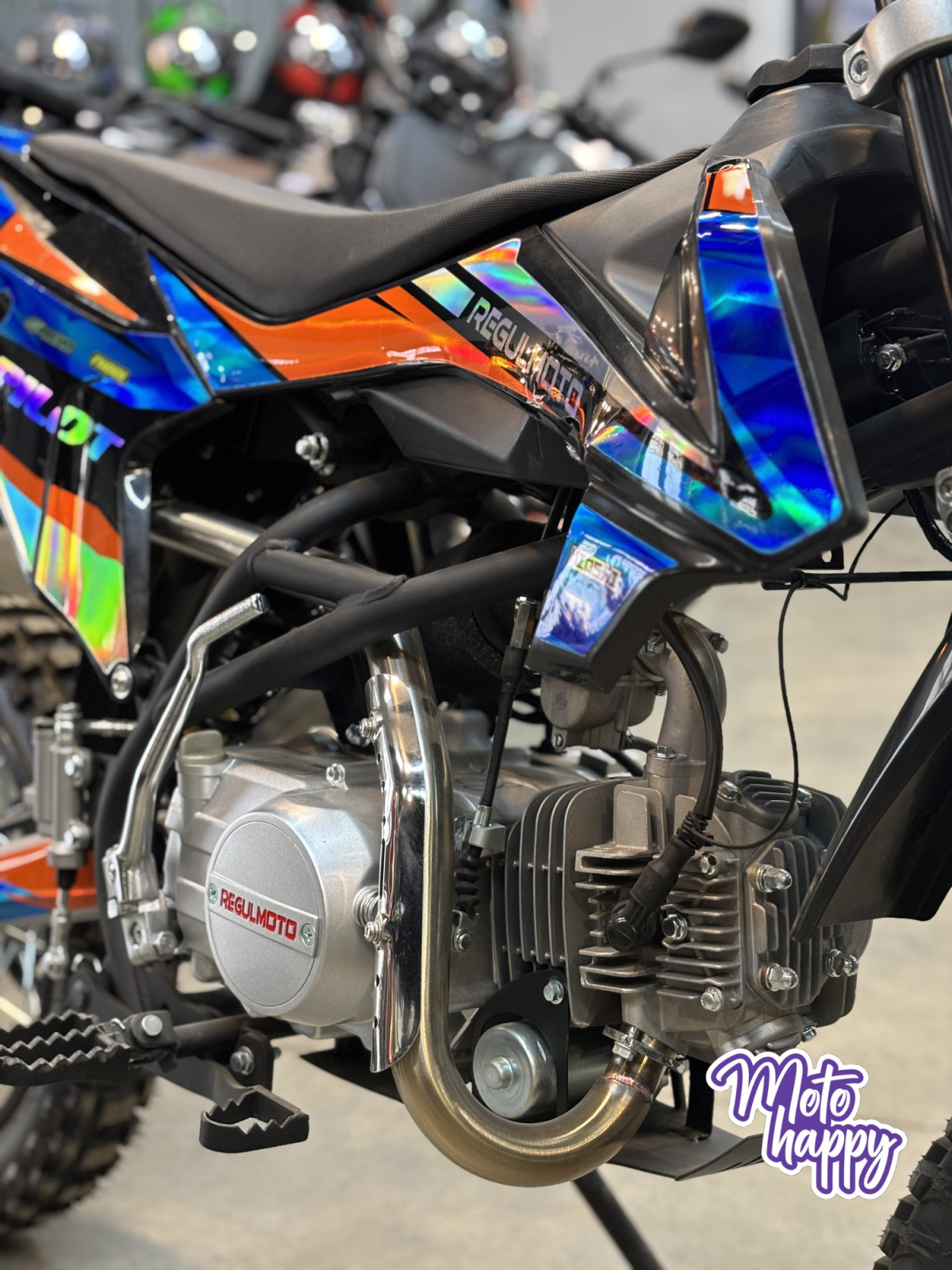 Regulmoto Pilot c электростартером и классической механической коробкой передач– питбайк начального уровня, созданный специалистами Американского мотобренда PitsterPro для юных мотогонщиков.