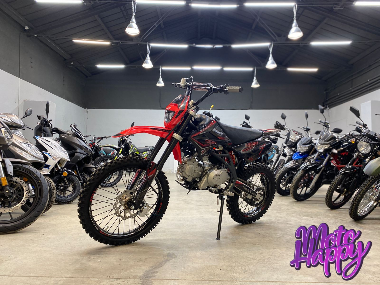 Regulmoto SEVEN MEDALIST PRO на колесах 19/16 дюймов – популярная модель питбайка, которую отличают взвешенный подбор комплектующих и широкий эксплуатационный потенциал. Достаточно высокий по седлу питбайк также подойдет райдерам с ростом выше среднего, а возможности аппарата позволят его обладателю использовать мини-мотоцикл для спортивных развлечений и совершенствования мастерства управления внедорожной мототехникой.