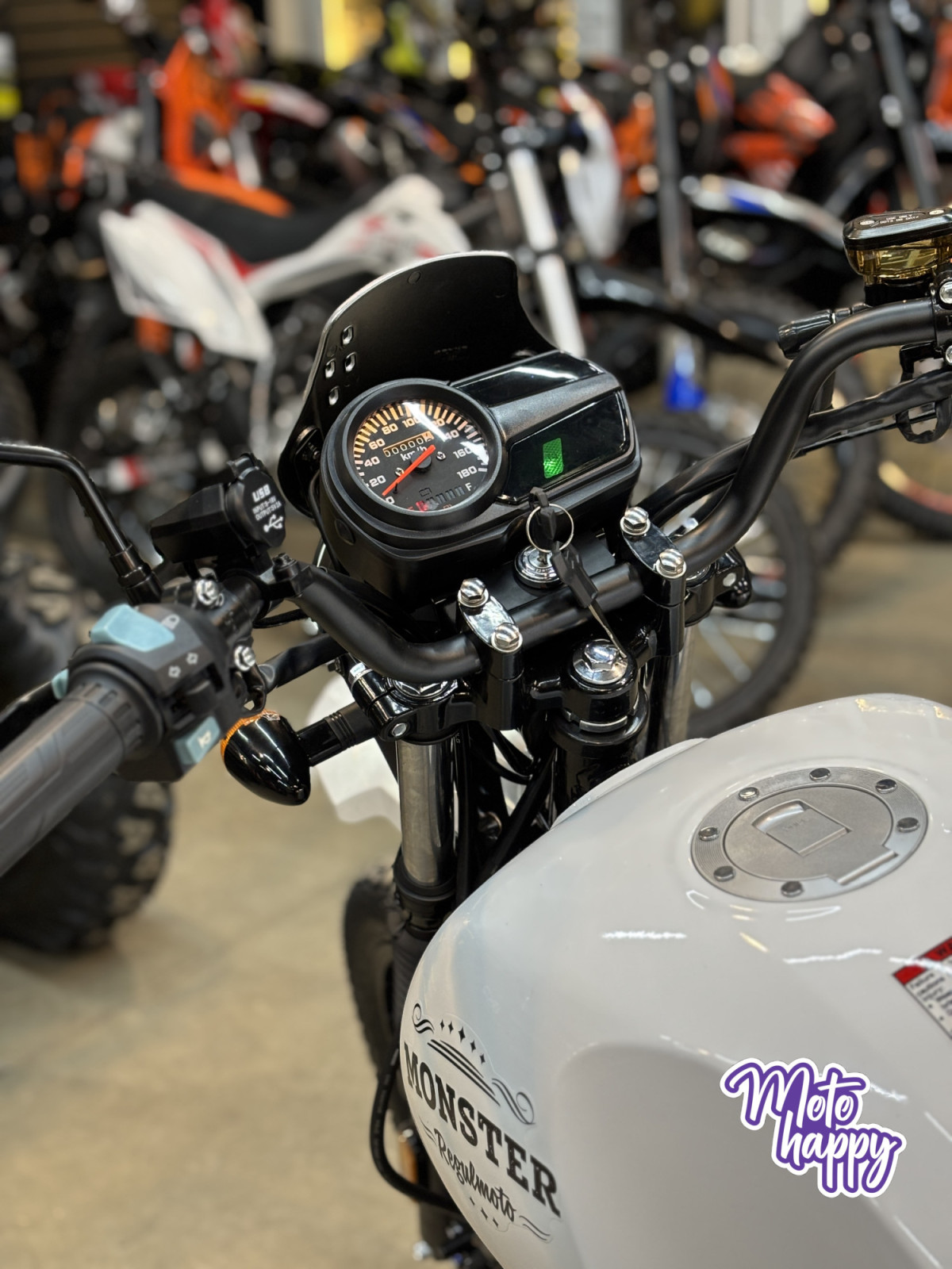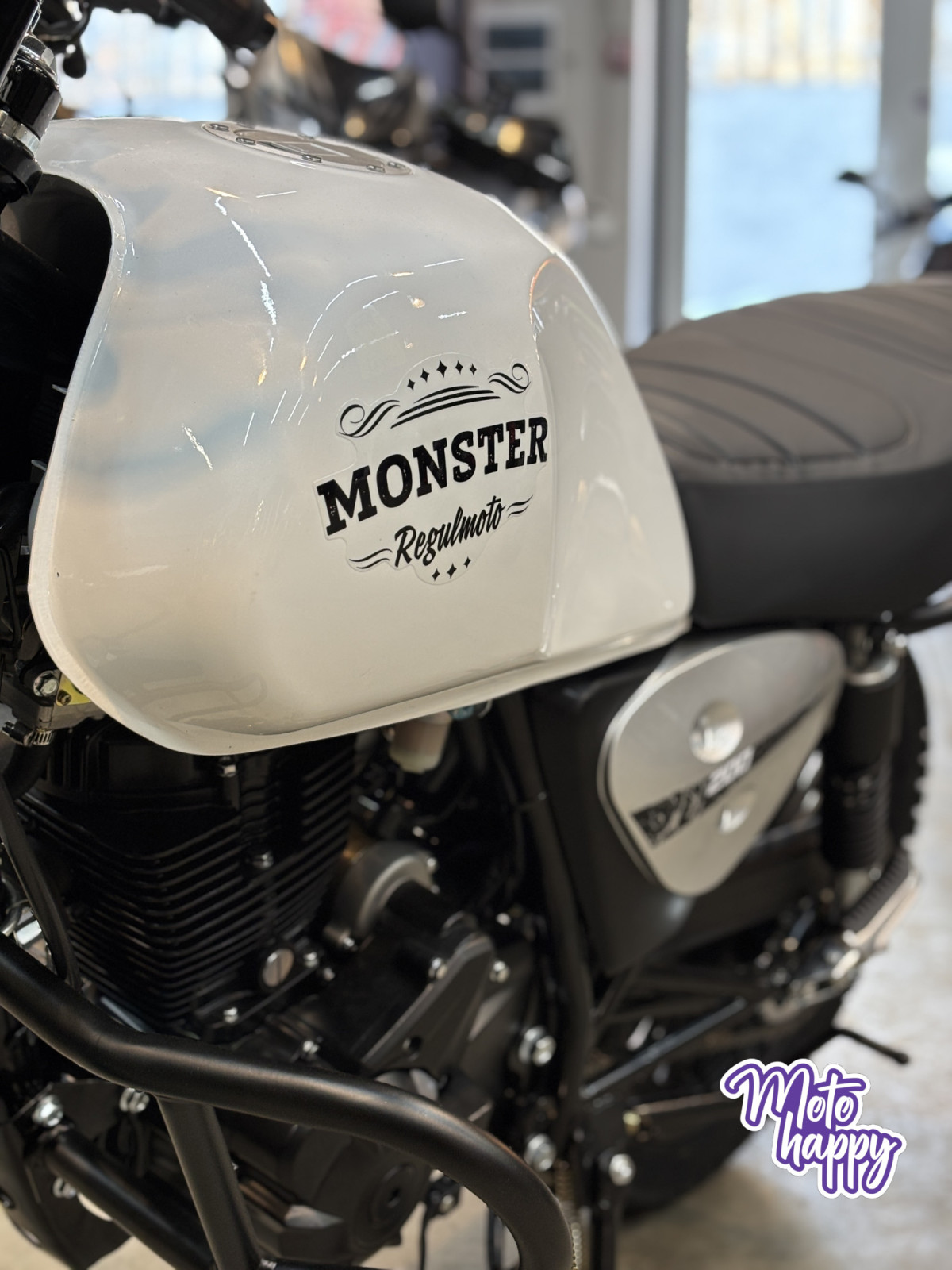 Regulmoto Monster отличается классическим дизайном, который понравится любителям ретро-стиля. При весе всего 118 кг и максимальной нагрузке в 150 кг, мотоцикл демонстрирует хорошую маневренность и устойчивость на дороге. Топливный бак объемом 14 литров позволяет покрывать большие расстояния без частых заправок.