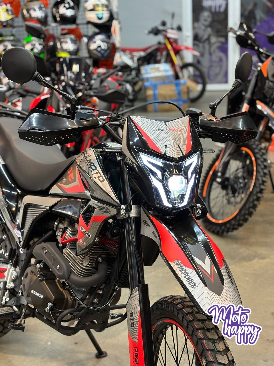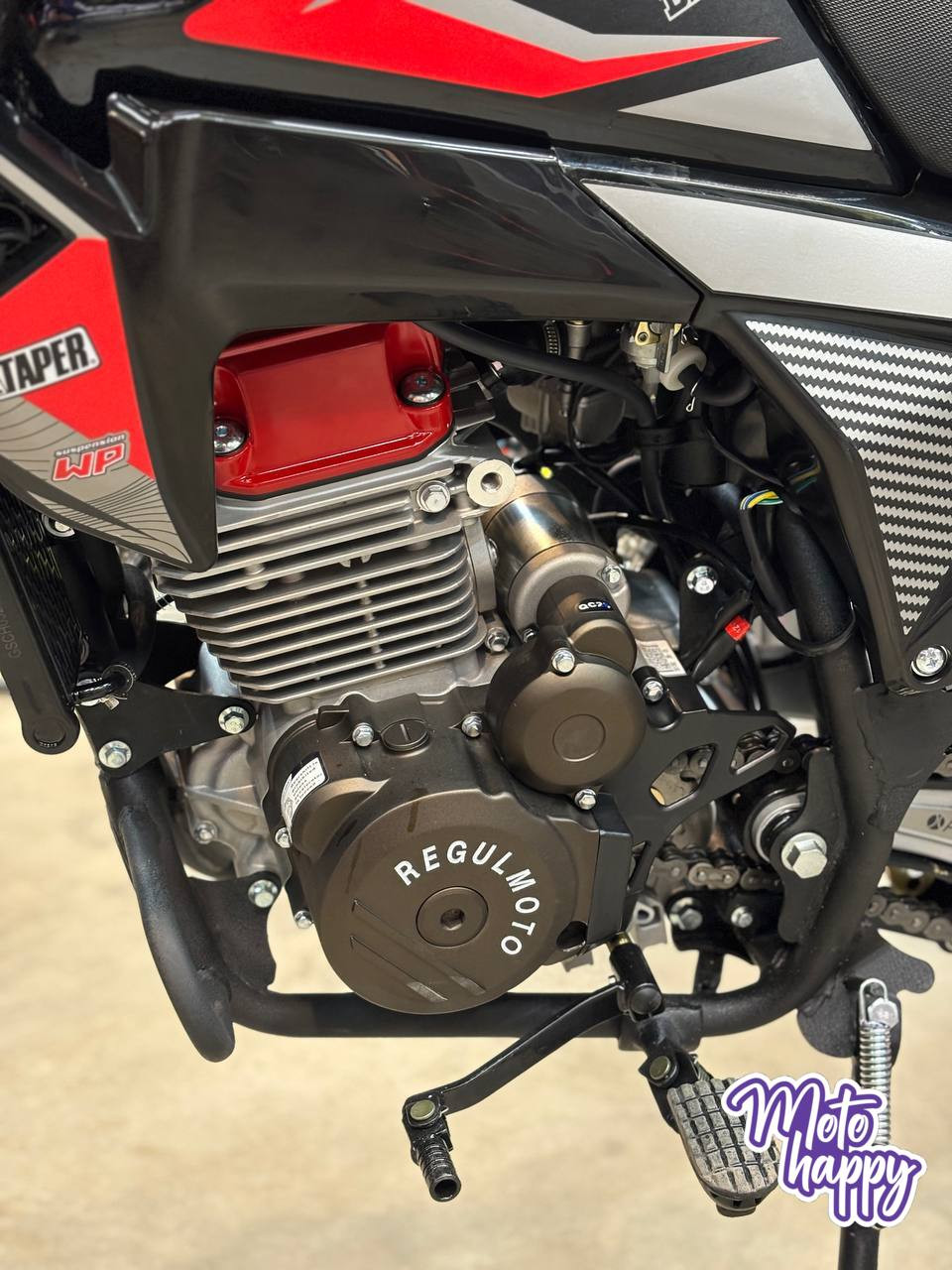 Мотоцикл Regulmoto TE 4 valve oil - это следующий шаг в развитии легендарной линейки турист-эндуро. В основе этой модели лежит революционное для серии обновление - современный 4-клапанный двигатель Zongshen объёмом 300 см³. Благодаря увеличенному количеству клапанов и балансирному валу он развивает 25 л.с., обеспечивая более высокую литровую мощность и невероятно ровную, отзывчивую тягу.