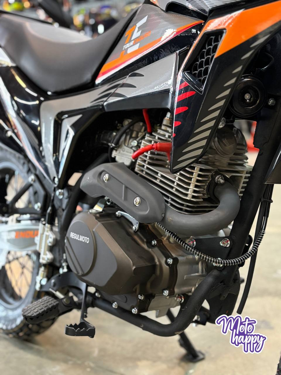 Эта модель продумана до мелочей: регулируемая подвеска с перевёрнутой 41-мм вилкой, светодиодная оптика с линзовой фарой, USB-разъём для зарядки, удобное двухместное сиденье и прочный багажник для кофра. Regulmoto TE 300 PR - ваш пропуск в мир настоящих мотопутешествий без границ.