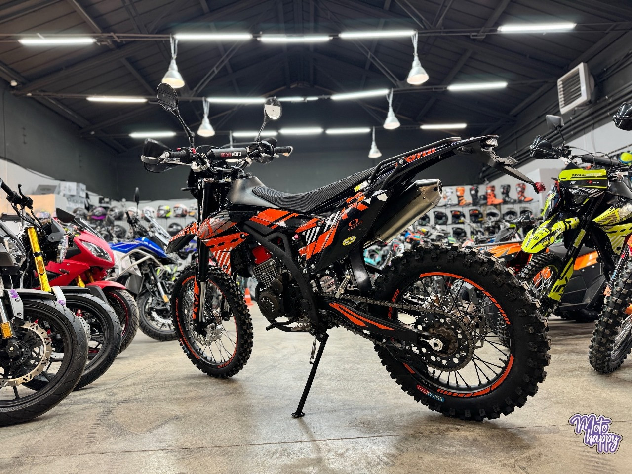 ZR PR создан для активного фрирайда и повседневной эксплуатации. Его прочная стальная рама, длинноходная перевёрнутая вилка и регулируемая задняя подвеска готовы к любым неровностям. Ключевое преимущество - наличие ПТС, что позволяет легально использовать мотоцикл на дорогах общего пользования. Полная светотехника, зеркала, электростартер, удобный руль Fatbar и багажник делают его практичным спутником на каждый день.