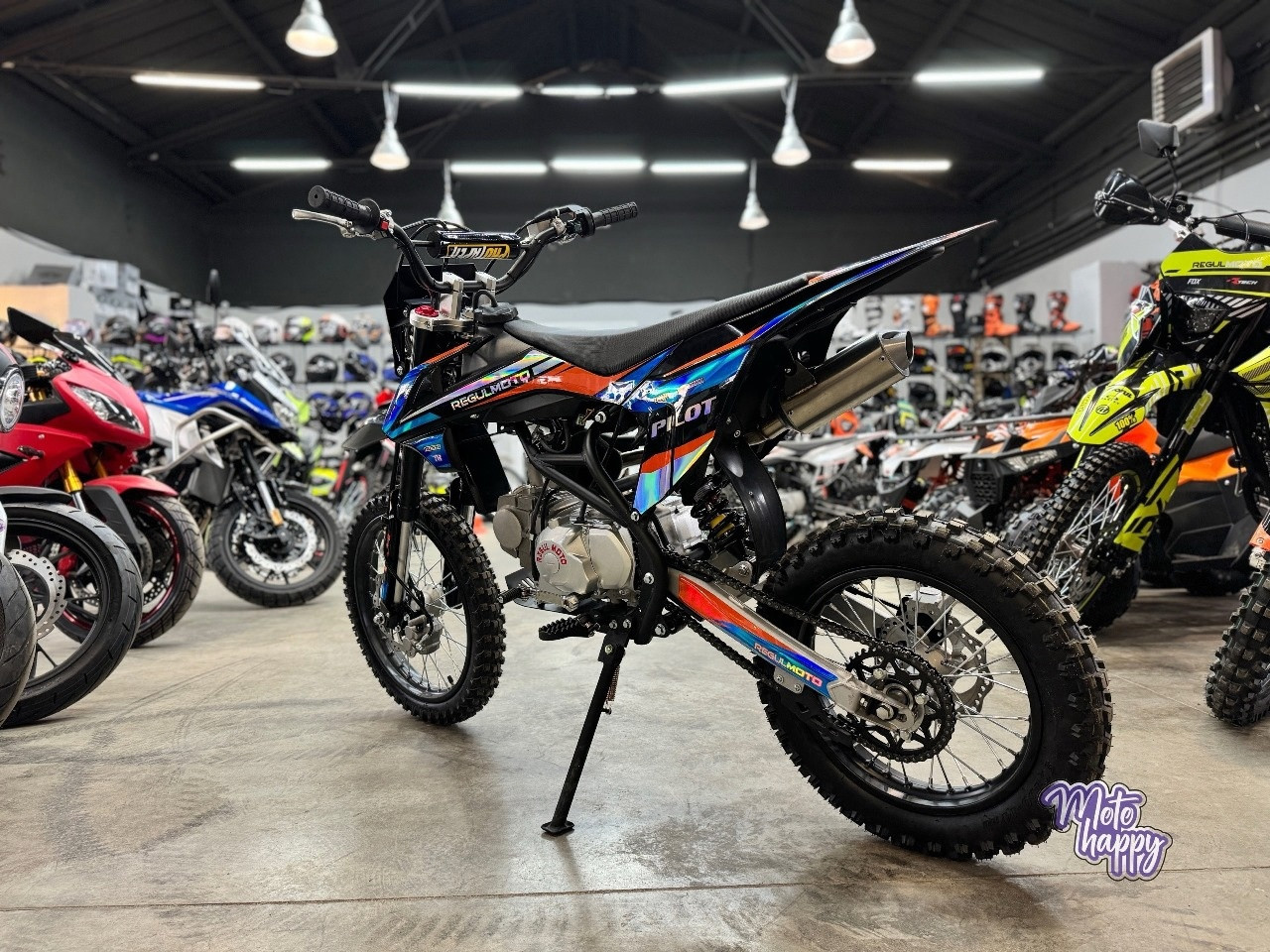 Regulmoto Pilot c электростартером и классической механической коробкой передач– питбайк начального уровня, созданный специалистами Американского мотобренда PitsterPro для юных мотогонщиков.