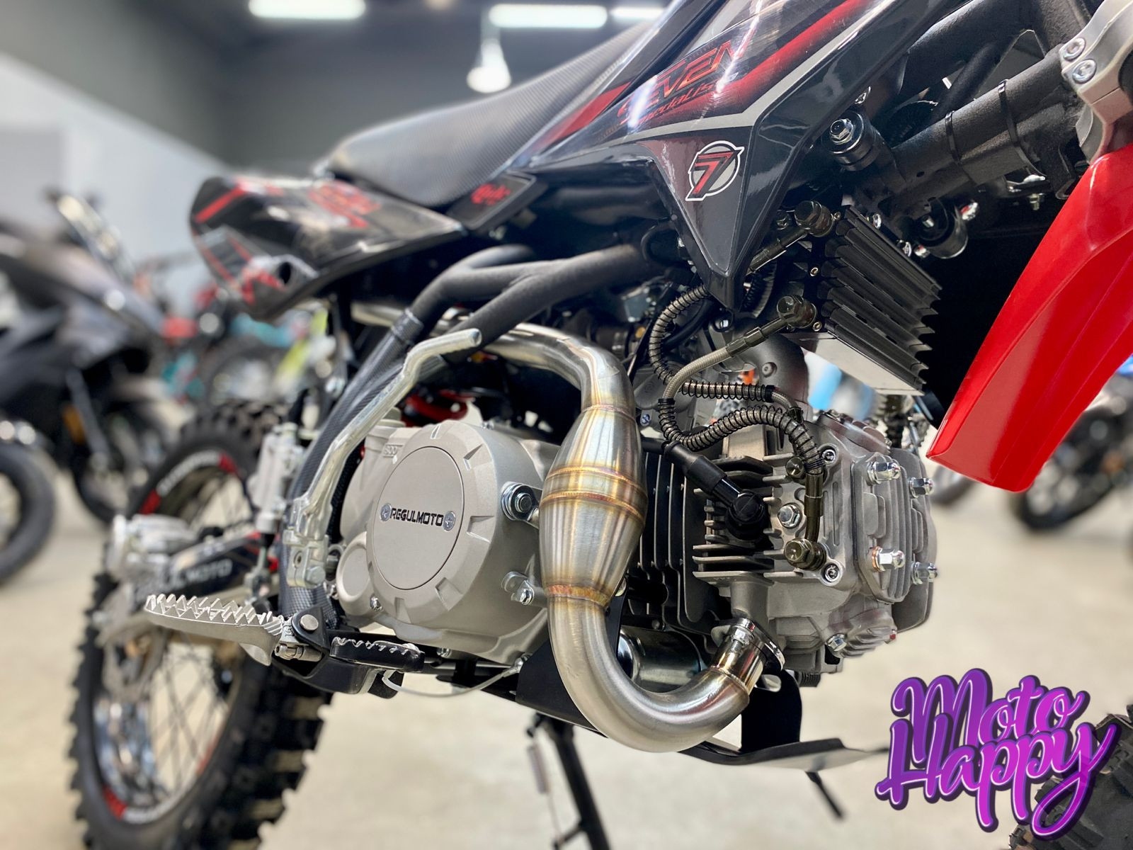 Regulmoto SEVEN MEDALIST PRO на колесах 19/16 дюймов – популярная модель питбайка, которую отличают взвешенный подбор комплектующих и широкий эксплуатационный потенциал. Достаточно высокий по седлу питбайк также подойдет райдерам с ростом выше среднего, а возможности аппарата позволят его обладателю использовать мини-мотоцикл для спортивных развлечений и совершенствования мастерства управления внедорожной мототехникой.